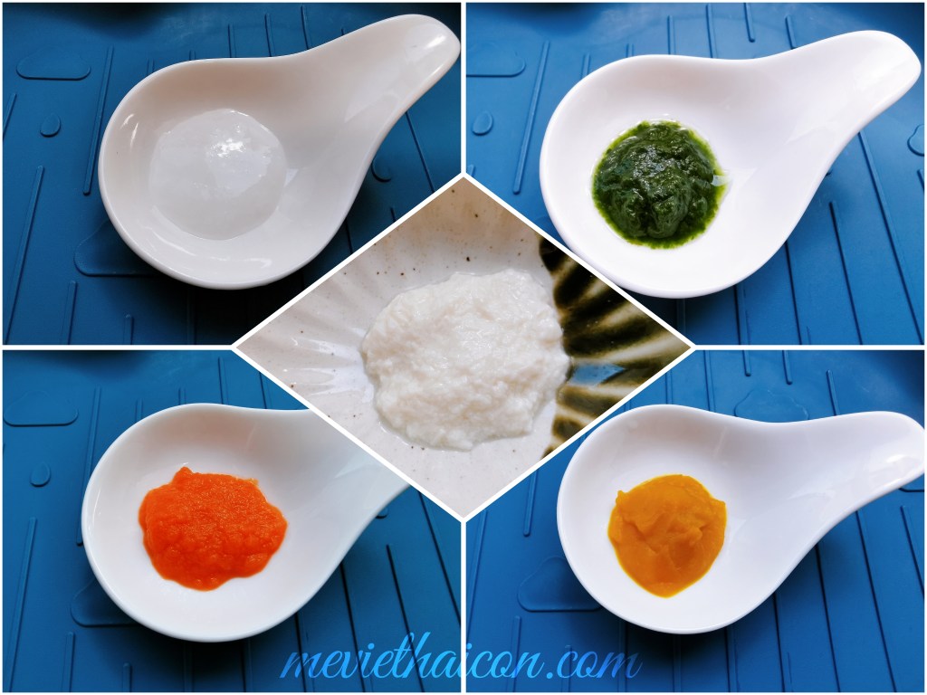 Hình ảnh trên là dạng thức ăn mà bé sẽ được giới thiệu trong ăn dặm kiểu Nhật. Sau này mình sẽ dùng nhiều đơn vị tsp (Teaspoon – thìa cà phê) tương đương với thìa 5ml và tbsp (tablespoon – thìa ăn) tương đương với thìa 15ml. Trong ảnh là lượng thức ăn tương đương với 1 tsp.