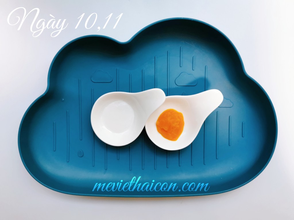 Ngày 10-11: 2~4tsp cháo 1:10 + 1tsp bí đỏ