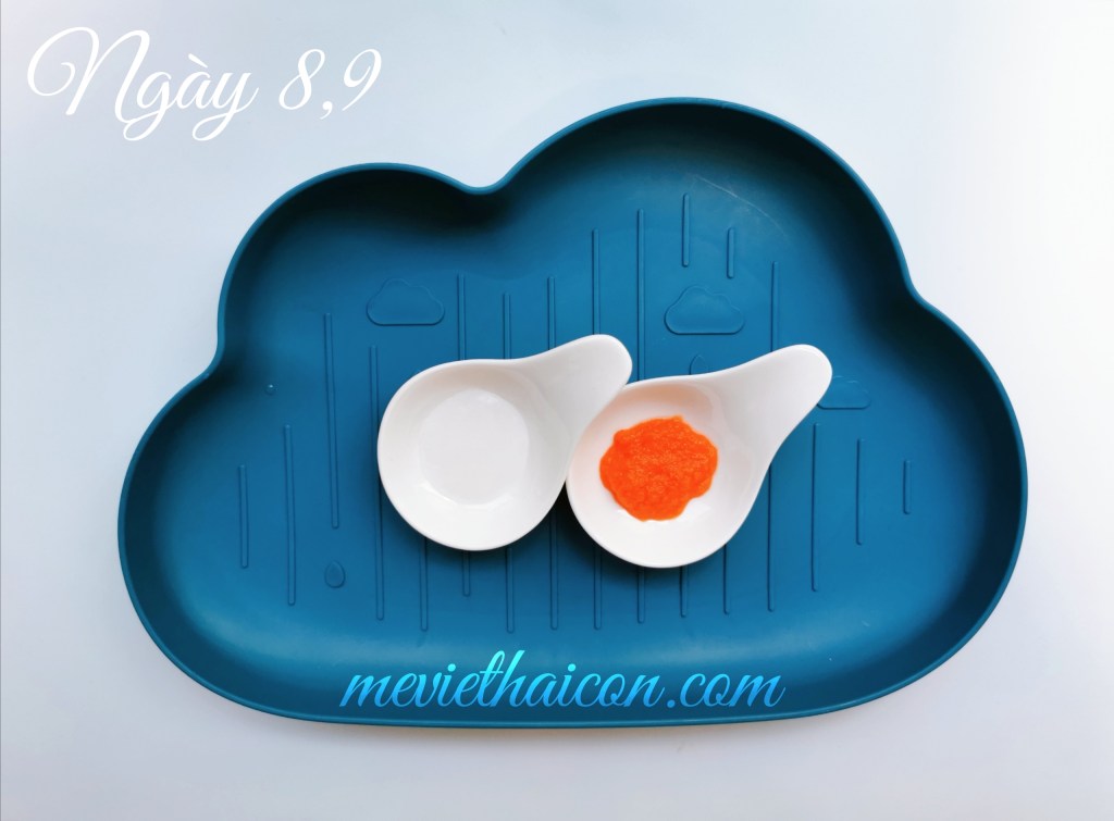 Ngày 8-9: 2~4tsp cháo 1:10 + 1tsp cà rốt