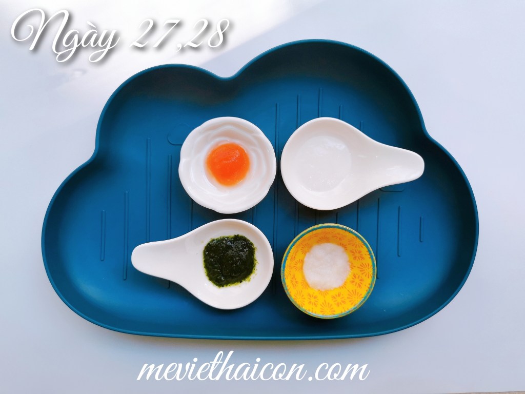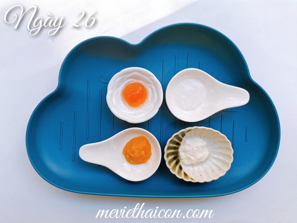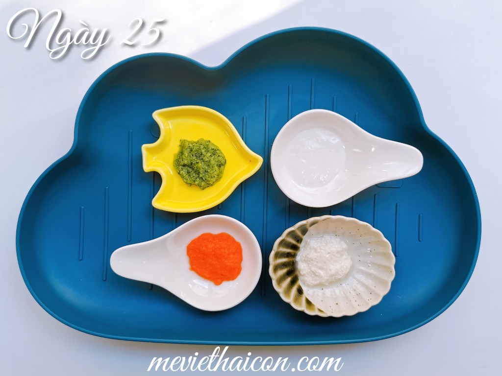 Bắt đầu từ khoảng ngày thứ 25, mẹ có thể cho bé ăn tăng lên 2 bữa nhé. Như Pan và Gaxi thì mình cho 1 bữa ăn dặm kiểu Nhật và một bữa BLW (để trật tự bố mẹ còn ăn cơm), hoặc mẹ có thể áp dụng cả 2 trong cùng 1 bữa: 15p đầu ăn BLW và 15p sau ăn dặm kiểu Nhật.